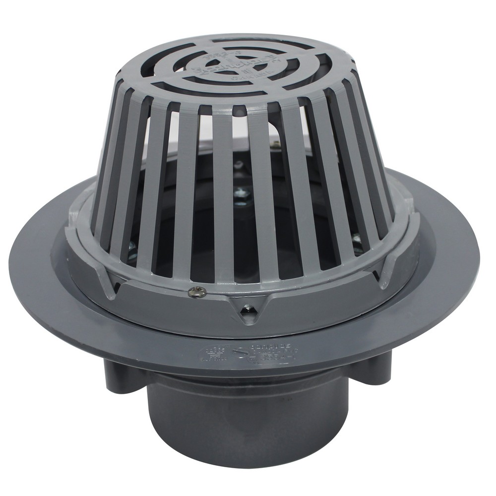 | 383554 | 4'' PVC FR-Pro Gray Roof Drain with Plastic Ring x Hub |